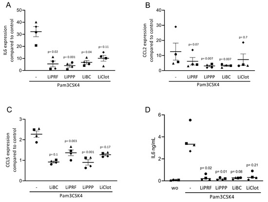 3.2. Lipids Extracted from PRF Fractions Suppress Pam3CSK-Induced Inflammation in ST2 Cells
