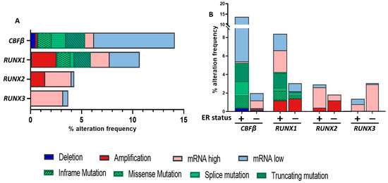 - Chimge, N.-O.; Frenkel, B. The RUNX family in breast cancer: Relationships with estrogen signaling. Oncogene 2013, 32, 2121–2130. [Google Scholar] [CrossRef]