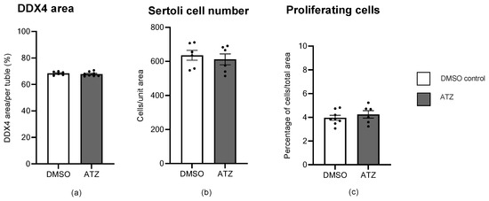 3.9. ATZ Exposure Did Not Affect the Area of Ddx4 Positive Cells, Sertoli Cell Number or the Number of Proliferating Cells