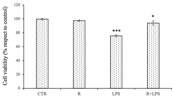 3.1. Effects of Resveratrol and Prolonged LPS Treatment on Cell Viability of N13 Microglial Cells