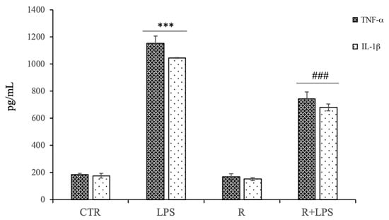 3.4. Effects of Resveratrol on Pro-Inflammatory Cytokine Production in LPS-Treated N13 Microglial Cells