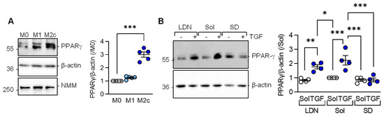 3.2. TGF-β-induced M2c Macrophage Polarization Relies on PPAR-γ and Alk5 Activation