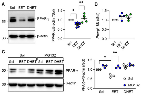3.4. Regulation of PPAR-γ Levels by 11,12-EET