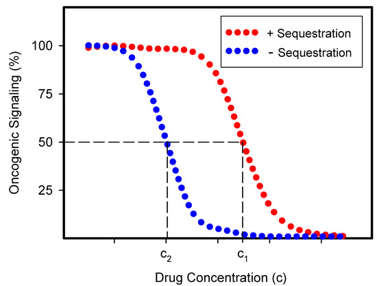 There are other studies that relate to lysosomal-mediated resistance to IM. These focus on the mechanism of drug resistance, i.e., a decrease in drug concentration at target sites due to sequestration by lysosomes. According to assumptions, we should measure a higher inhibitory effect on oncogenic signalling when the sequestration of the studied drug is blocked compared with unblocked sequestration (Figure 1c).