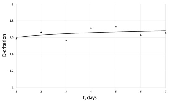 The second important criterion for the studying of evolutionary dynamics of cell cultures is the criterion of fractal dimension—Hausdorff’s criterion.
