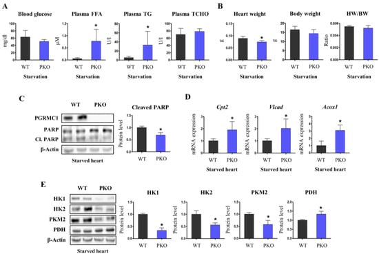 3.3. Pgrmc1 Loss Increases Fatty Acid/Pyruvate Oxidation and Decreases Starvation-Induced Cardiac Injury