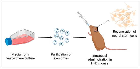 A simplified protocol for the potential therapeutic effect of exo-NSCs in obesity-induced NSC dysregulation.