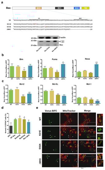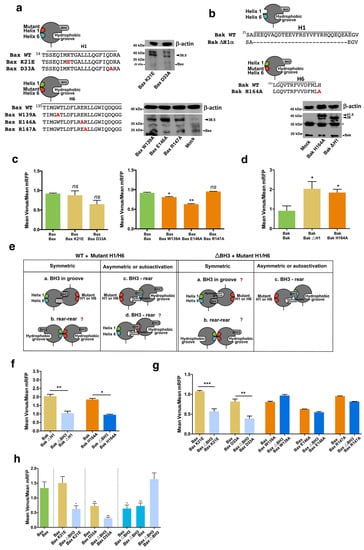 - Czabotar, P.E.; Lee, E.F.; Thompson, G.V.; Wardak, A.Z.; Fairlie, W.D.; Colman, P.M. Mutation to Bax beyond the BH3 domain disrupts interactions with pro-survival proteins and promotes apoptosis. J. Biol. Chem. 2011, 286, 7123–7131. [Google Scholar] [CrossRef]
