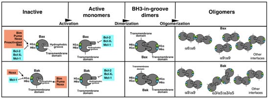 3.3. Involvement of the BH3 Domain and the α1–α6 Interface in Dimerization of Bax and Bak