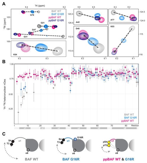 3.3. The BAF Gly16Arg Structure Is Intermediate to Un- and Di-Phosphorylated BAF WT
