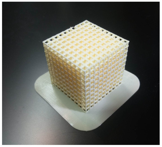 A model of a 30 mm × 30 mm × 30 mm lattice after printing on an FDM printer using PLA.