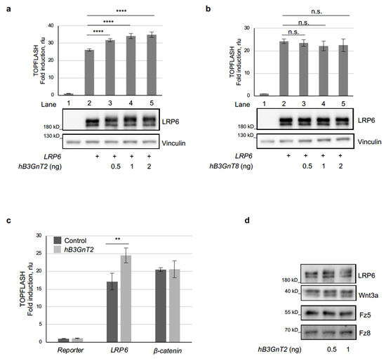 3.2. Human B3GnT2 Promotes Wnt/β-Catenin Signalling and Acts at the Level of LRP6