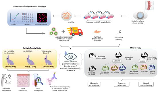 Graphical abstract of the experimental plan for assessing the safety and efficacy of human limbus−derived stromal/mesenchymal stem cells.