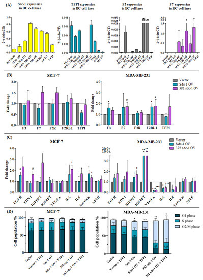 3.5. Sdc-1 Overexpression Affects Tissue Factor Pathway-Related Genes and Their Downstream Signaling in MCF-7 and MDA-MB-231 Cells