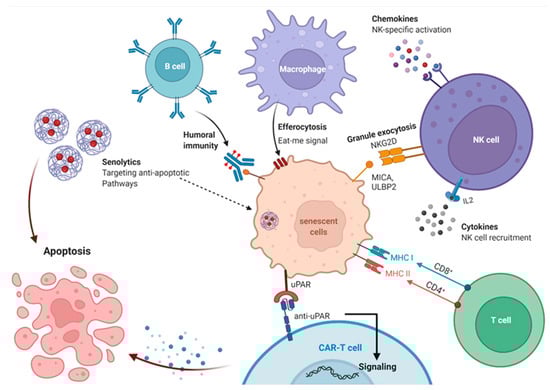 - Burton, D.G.A.; Stolzing, A. Cellular senescence: Immunosurveillance and future immunotherapy. Ageing Res. Rev. 2018, 43, 17–25. [Google Scholar] [CrossRef]