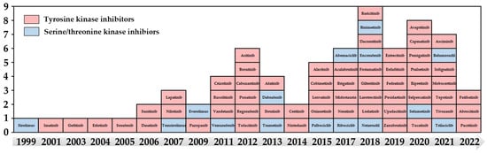 - Roskoski, R., Jr. Properties of FDA-approved small molecule protein kinase inhibitors: A 2023 update. Pharmacol. Res. 2022, 187, 106552. [Google Scholar] [CrossRef]