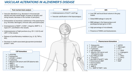 In this review, we will focus on vascular-related biomarkers with the potential to become indicators of either the beginning and/or progression of AD; therefore, we will review the latest evidence regarding the relationship between vascular damage and AD, as well as how this interconnection has an impact on AD pathophysiology.