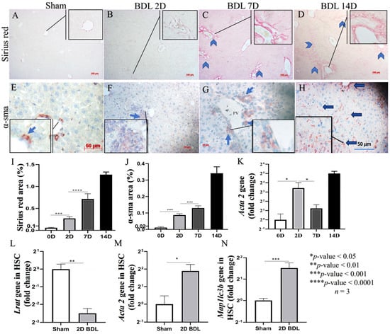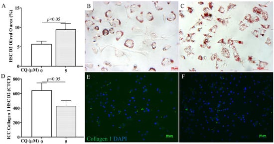 3.4. Autophagy Inhibition by CQ Was Associated with HSC Inactivation in 2D BDL Mice