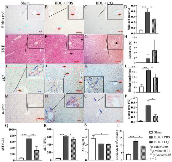 3.3. CQ Reduced D2 BDL-Induced Acute Liver Damage