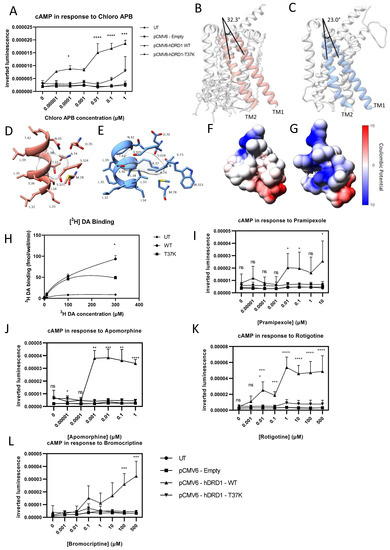 3.5. Homology Modelling of DRD1-T37K Predicted Altered Ligand Binding, Confirmed In Vitro