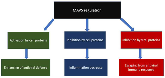 - Sharma, S.; Fitzgerald, K.A. Viral defense: It takes two MAVS to Tango. Cell 2010, 141, 570–572. [Google Scholar] [CrossRef] [PubMed]