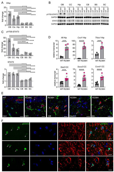 - Ben Haim, L.; Ceyzeriat, K.; Carrillo-de Sauvage, M.A.; Aubry, F.; Auregan, G.; Guillermier, M.; Ruiz, M.; Petit, F.; Houitte, D.; Faivre, E.; et al. The JAK/STAT3 Pathway Is a Common Inducer of Astrocyte Reactivity in Alzheimer’s and Huntington’s Diseases. J. Neurosci. 2015, 35, 2817–2829. [Google Scholar] [CrossRef] [PubMed]