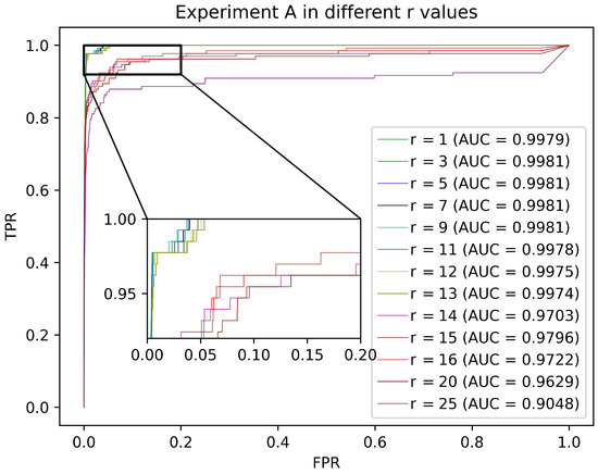 In this section, we design Validation Experiment A to quantitatively analyze the effect of the truncated position r on the predictive performance of AMCSMMA. Specifically, all confirmed associations in Dataset 1 are regarded as the training samples, all verified associations in Dataset 3 are treated as the testing samples, and all SM–miRNA pairs in Dataset 1 that are neither part of the training set nor the testing set are considered as the candidate samples.