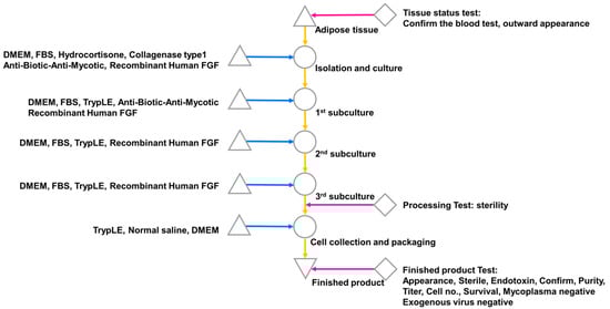 ADSC isolation from human-derived adipose tissue. Single cells were isolated from adipose tissue and subcultured three times with FGF; cells were collected after the third subculture and subjected to a product suitability test.