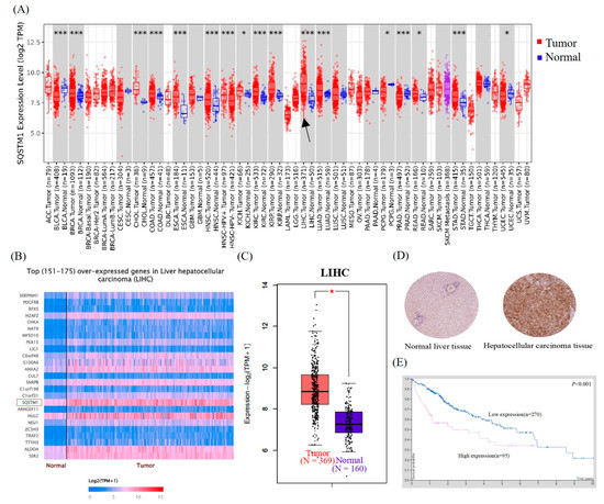 3.1. SQSTM1/p62 Is Overexpressed in HCC Tissues and Seriously Affects the Prognosis
