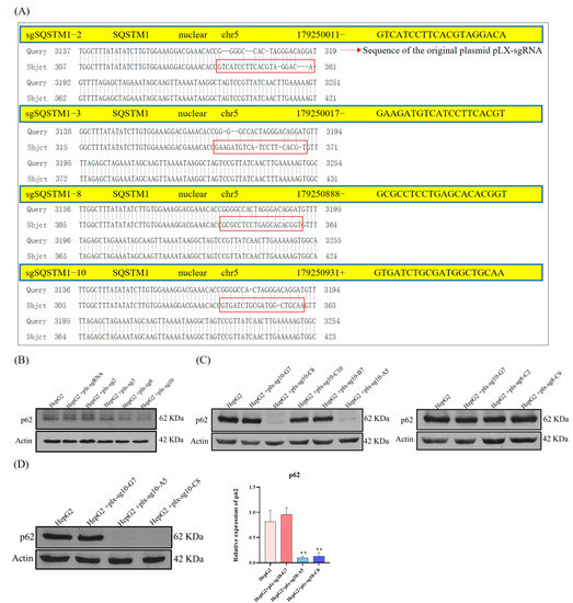 2.3. Generation of SQSTM1/p62 KO HepG2 Cells by CRISPR/Cas9 System