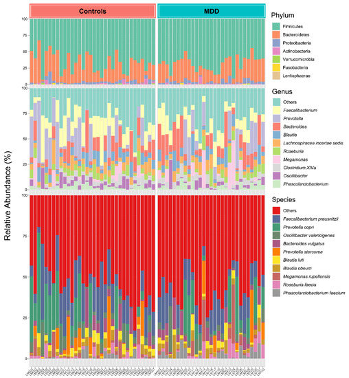 - Jiang, H.; Ling, Z.; Zhang, Y.; Mao, H.; Ma, Z.; Yin, Y.; Wang, W.; Tang, W.; Tan, Z.; Shi, J.; et al. Altered fecal microbiota composition in patients with major depressive disorder. Brain Behav. Immun. 2015, 48, 186–194. [Google Scholar] [CrossRef] [PubMed]