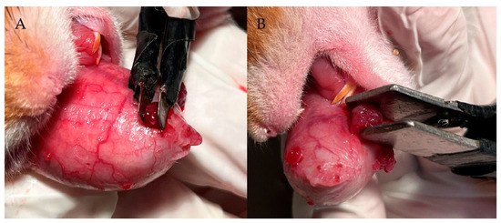 Mucositis in precancerous tissue was evaluated semi-quantitatively employing an oral mucositis scale adapted from studies in hamsters and humans [45,46,47]: Grade 0: healthy appearance, no erosion or vasodilation; Grade 1 (slight): erythema and/or edema and/or vasodilation, no evidence of mucosal erosion; Grade 2 (slight): severe erythema and/or edema, vasodilation and/or superficial erosion; Grade 3 (moderate): severe erythema and/or edema, vasodilation, and the formation of ulcers <2 mm in diameter; Grade 4 (severe): severe erythema and/or edema, vasodilation, and the formation of ulcers ≥2 mm and <4 mm in diameter, and/or necrosis areas <4 mm in diameter; Grade 5 (severe): the formation of ulcers ≥4 mm in diameter or multiple ulcers ≥2 mm in diameter, and/or necrosis areas ≥4 mm in diameter. Grading was based on the most severe macroscopic feature.