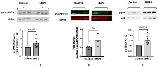 2.5.3. Assessment of the Effect of BMP4 Treatment on Phospho-Smad 1/5/9 and Phospho-p38 Levels