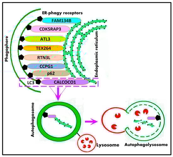 - Mochida, K.; Nakatogawa, H. ER-phagy: Selective autophagy of the endoplasmic reticulum. EMBO Rep. 2022, 23, e55192. [Google Scholar] [CrossRef] [PubMed]