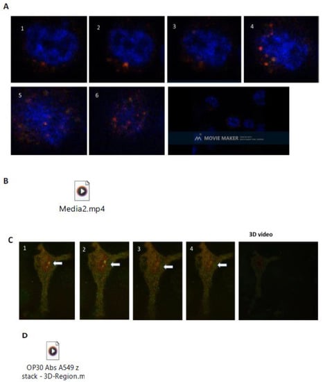 The following supporting information can be downloaded at: https://www.mdpi.com/article/10.3390/cells12091332/s1, Video S1: Media.mp4, Video S2: OP30 Abs A549z stack-3D-region.m.