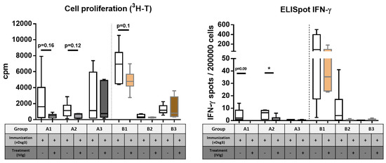 Since we observed reduced anti-Dsg3 IgG serum levels associated with Treg cell induction in the spleen and lymph nodes, we aimed to further characterize the Dsg3-specific T cells ex vivo. While the proliferation assay based on 3H-T incorporation facilitates a more general analysis of T-cell reactivity after Dsg3-specific ex vivo stimulation (Figure 6A), the IFN-ℽ ELISpot enables quantification of the Th1 response pattern (Figure 6B).