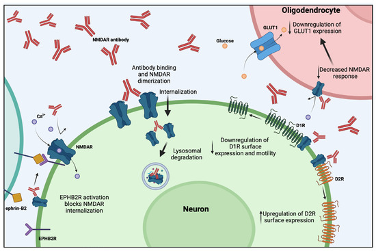 - Carceles-Cordon, M.; Mannara, F.; Aguilar, E.; Castellanos, A.; Planaguma, J.; Dalmau, J. NMDAR Antibodies Alter Dopamine Receptors and Cause Psychotic Behavior in Mice. Ann. Neurol. 2020, 88, 603–613. [Google Scholar] [CrossRef]