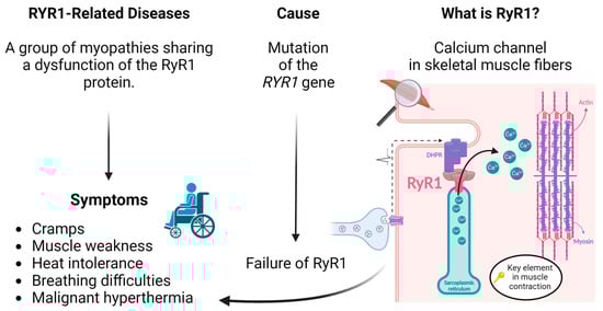 - Klein, A.; Lillis, S.; Munteanu, I.; Scoto, M.; Zhou, H.; Quinlivan, R.; Straub, V.; Manzur, A.Y.; Roper, H.; Jeannet, P.Y.; et al. Clinical and genetic findings in a large cohort of patients with ryanodine receptor 1 gene-associated myopathies. Hum. Mutat. 2012, 33, 981–988. [Google Scholar] [CrossRef] [PubMed]