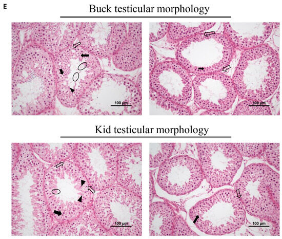 A blood sample (5 mL) in duplicate for the Yiling goats (n = 30) was collected from the external jugular vein at weeks 0, 2, 4, 6, 8, 10, 12, and 14 post-immunization to obtain blood and serum and subsequently stored at −80 °C for later use. At 14 weeks after the initial immunization, all experimental goats were euthanized. During necropsies, tissue specimens were collected in phosphate buffer saline (PBS) for histological analysis and others frozen for RNA extraction for real-time qPCR analysis of the testes.