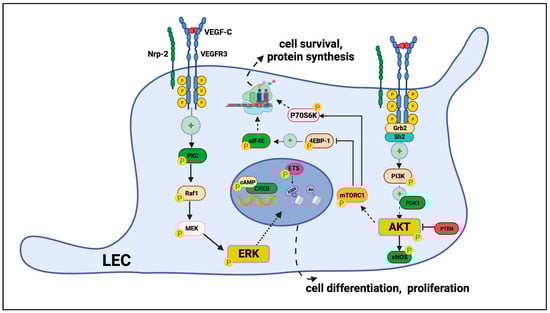 - Coso, S.; Zeng, Y.; Opeskin, K.; Williams, E.D. Vascular endothelial growth factor receptor-3 directly interacts with phosphatidylinositol 3-kinase to regulate lymphangiogenesis. PLoS ONE 2012, 7, e39558. [Google Scholar] [CrossRef] [PubMed]