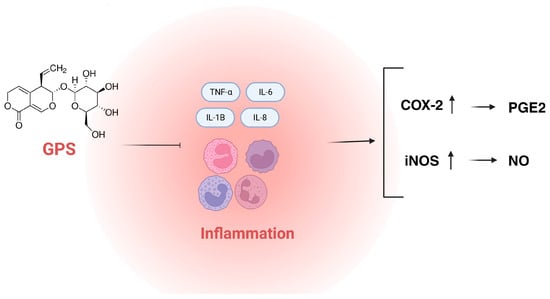 The anti-inflammatory properties of GPS were helpful in soothing inflammatory conditions in the studies of Wang et al. []. As a result, it was found that, in vitro, GPS reduced the inflammatory cytokine production of primary bone marrow-derived macrophages (BMMs) stimulated by (LPS)/IFN-γ. The secoiridoid prevented LPS/IFN-γ-induced inflammatory cytokine production by macrophages through the NF-κB (nuclear factor kappa) signaling pathway in vitro, and might exert a protective role by suppressing pro-inflammatory cytokine production by macrophages.