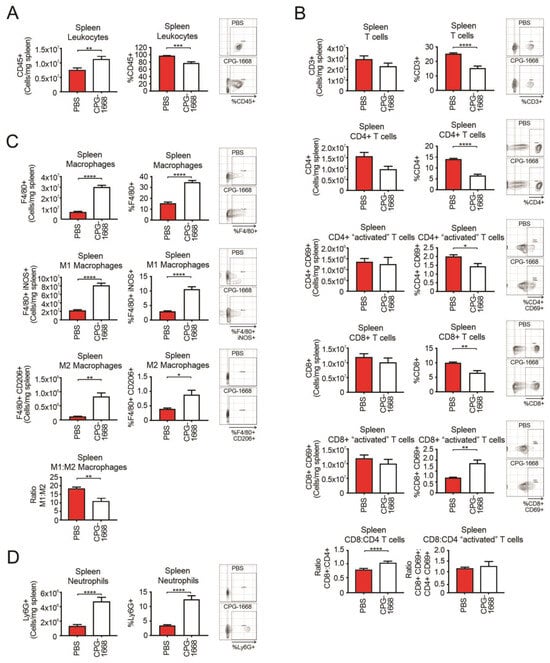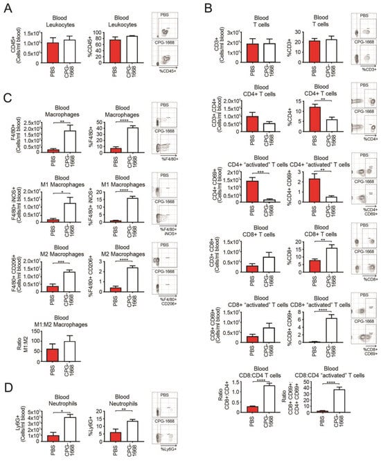 3.3. CPG-1668 Treatment Boosts Systemic Macrophage, Neutrophil, and Cytotoxic CD8+ T-Cell Numbers