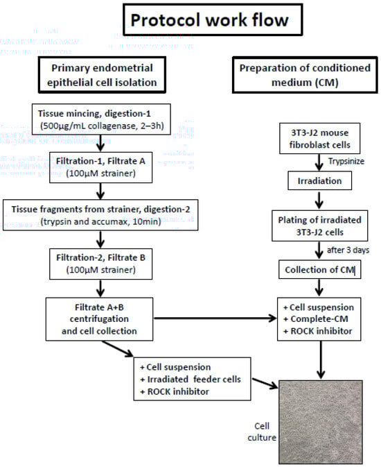 - Masuda, A.; Katoh, N.; Nakabayashi, K.; Kato, K.; Sonoda, K.; Kitade, M.; Takeda, S.; Hata, K.; Tonikawa, J. An improved method for isolation of epithelial and stromal cells from the human endometrium. J. Reprod. Dev. 2016, 62, 213–218. [Google Scholar] [CrossRef] [PubMed]