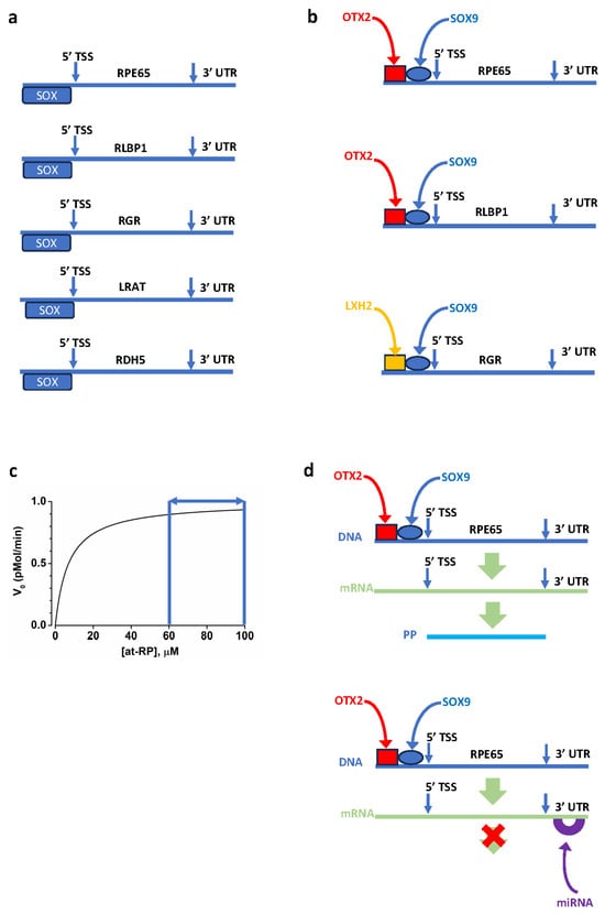 - Liu, S.Y.; Redmond, T.M. Role of the 3′-untranslated region of RPE65 mRNA in the translational regulation of the RPE65 gene: Identification of a specific translation inhibitory element. Arch. Biochem. Biophys. 1998, 357, 37–44. [Google Scholar] [CrossRef] [PubMed]