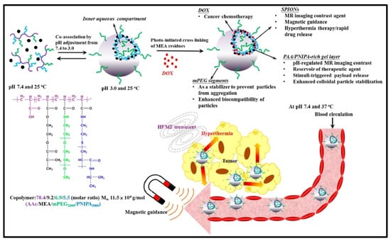 - Chiang, W.H.; Ho, V.T.; Chen, H.H.; Huang, W.C.; Huang, Y.F.; Lin, S.C.; Chern, C.S.; Chiu, H.C. Superparamagnetic hollow hybrid nanogels as a potential guidable vehicle system of stimuli-mediated MR imaging and multiple cancer therapeutics. Langmuir 2013, 29, 6434–6443. [Google Scholar] [CrossRef] [PubMed]