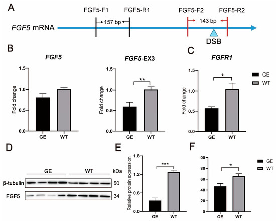 3.2. The Expression of FGF5 mRNA and Protein Was Decreased in GE Sheep