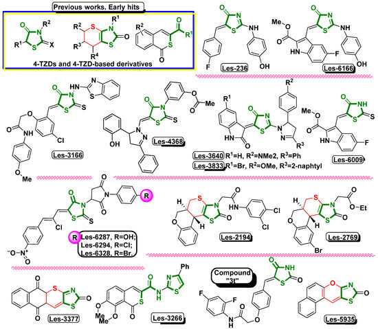 Structures of 4-TZDs and 4-TZD-based derivatives used in the present and previous studies.