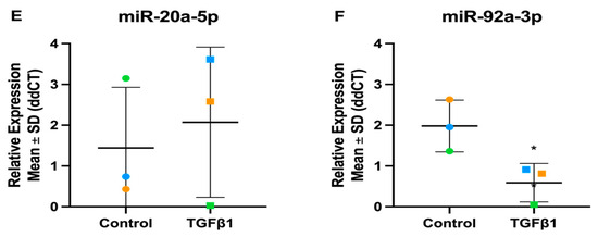 3.4. Validation of TGFβ1 Responsive DEmiRs by RT-qPCR