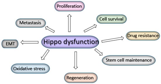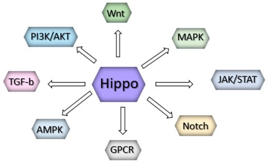 - Fu, M.; Hu, Y.; Lan, T.; Guan, K.L.; Luo, T.; Luo, M. The Hippo signalling pathway and its implications in human health and diseases. Signal Transduct. Target. Ther. 2022, 7, 376. [Google Scholar] [CrossRef]