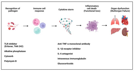 Until now, strategies have primarily focused on preventing pathogen recognition and blocking pathogen invasion or TLR signaling; however, the discussion is now shifting toward treating sepsis through immunosuppression by inhibiting the cytokines produced host–pathogen recognition. In this section, we will briefly explain the significance of each cytokine in the pathogenesis of sepsis and describe how strategies to inhibit these cytokines have been investigated, using representative clinical trials as examples.